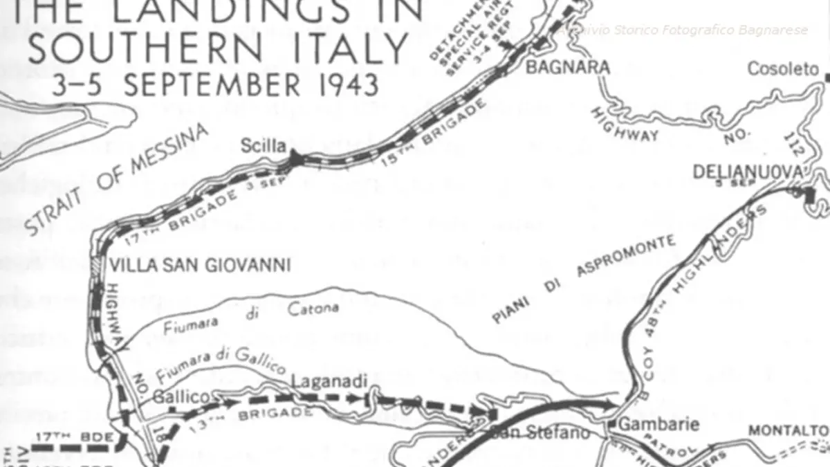 L’armistizio veniva firmato in Sicilia a Cassibile (sarebbe stato ufficializzato dal maresciallo Badoglio l’8 settembre successivo) e a Reggio Calabria con l’operazione Baytown iniziava l’avanzata degli Alleati via mare nel Sud della Calabria, ad opera del XIII Corpo d’armata britannica, in quel frangente guidato dal generale Bernard Law Montgomery, reduce dalla vittoria della battaglia di El Alamein, in Egitto durante la campagna del Nord Africa. Era il 3 settembre 1943.