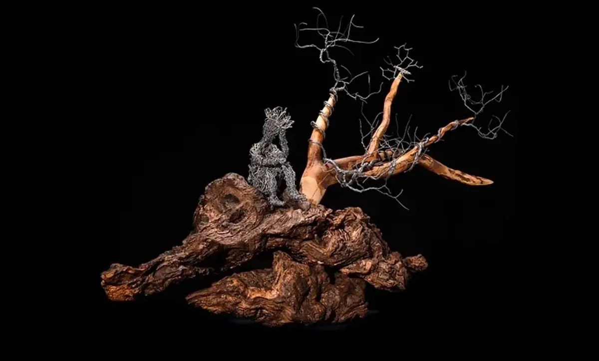 Tra queste, c’era anche l’opera “Rebis” dello scultore autodidatta originario di Molochio, taurianovese d’adozione, Pasquale Angelo Sciglitano. Classe 1972 e avvocato di professione, Sciglitano si definisce uno spirito inquieto, alla ricerca del proprio mondo nel quale immergersi totalmente, trovato nella piccola bottega artigiana che ha messo in piedi quando ha deciso di dedicarsi all’arte.