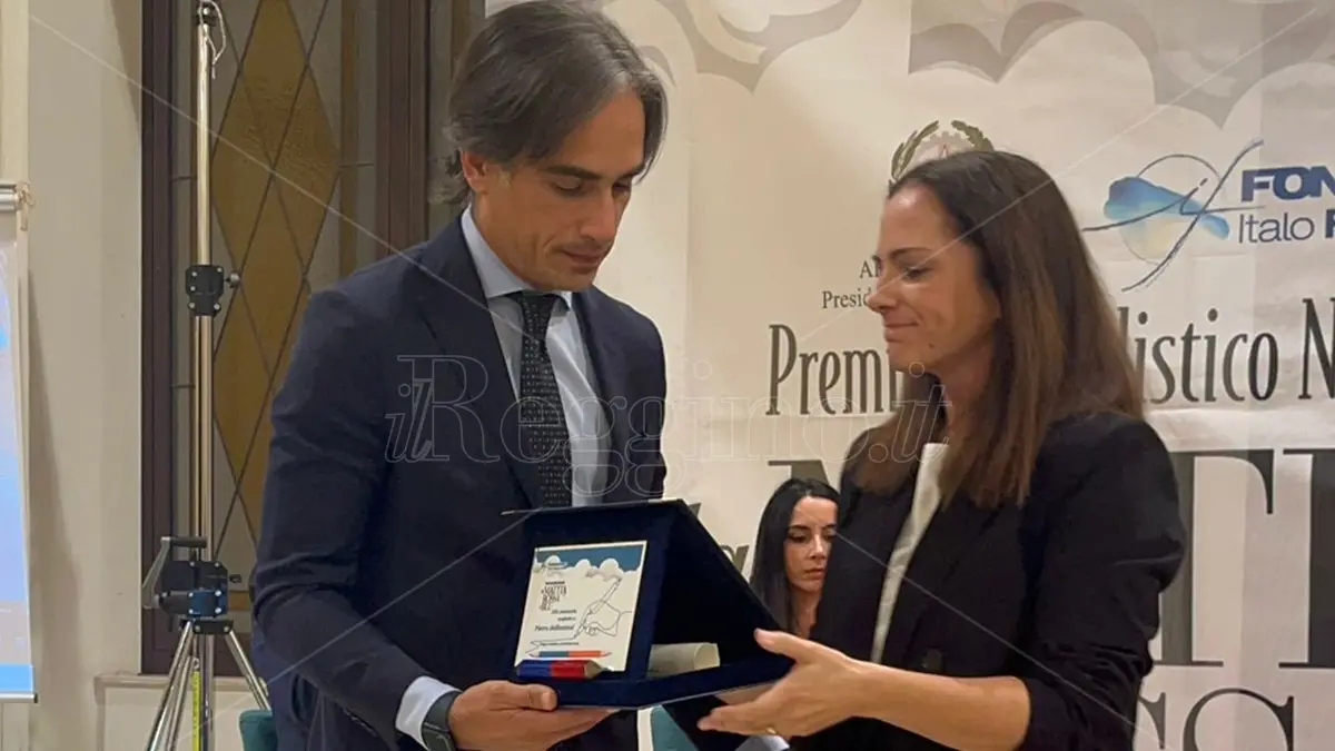 Premio alla memoria al giornalista Rai Pietro Bellantoni, già direttore del Reggino, penna brillante nel panorama dell’informazione calabrese, prematuramente scomparso. Il riconoscimento viene consegnato alla moglie Ketty Tramontana dal sindaco Giuseppe Falcomatà.
