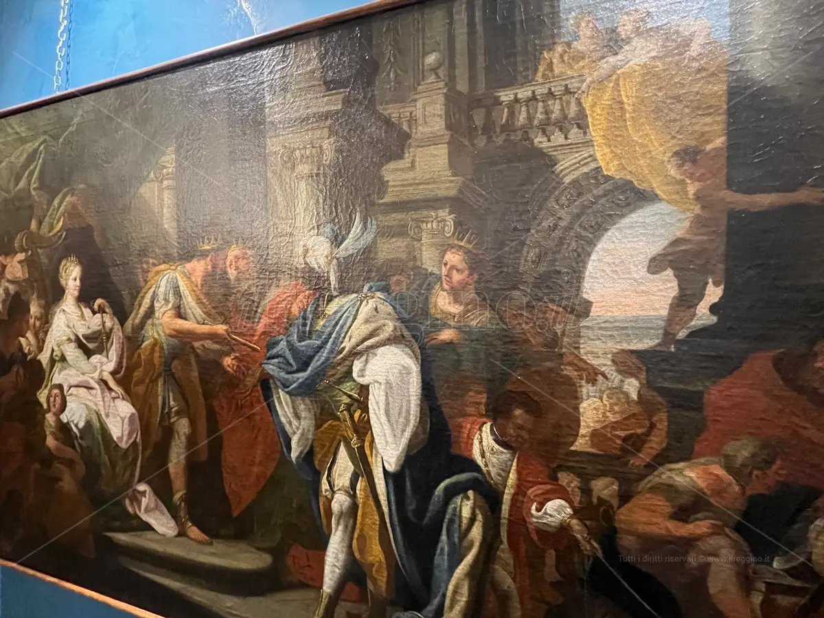 «Il Geraci definisce la tela di grande effetto decorativo, riportando alcune attribuzioni che nel tempo furono ipotizzate (Sebastiano Conte, Francesco De Mura o Vincenzo Cannizzaro). Il dipinto, in seguito ritenuto molto vicino all’ambito solimeniano, presenta caratteri ricorrenti della pittura tardo barocca. Per esempio il vivace affollamento della scena, trasposta in un’ambientazione architettonica neoclassica, e le tonalità cromatiche – Inv. n. 2003 C del Museo Nazionale di Reggio Calabria», si legge nella nota storico-critica dell’opera.