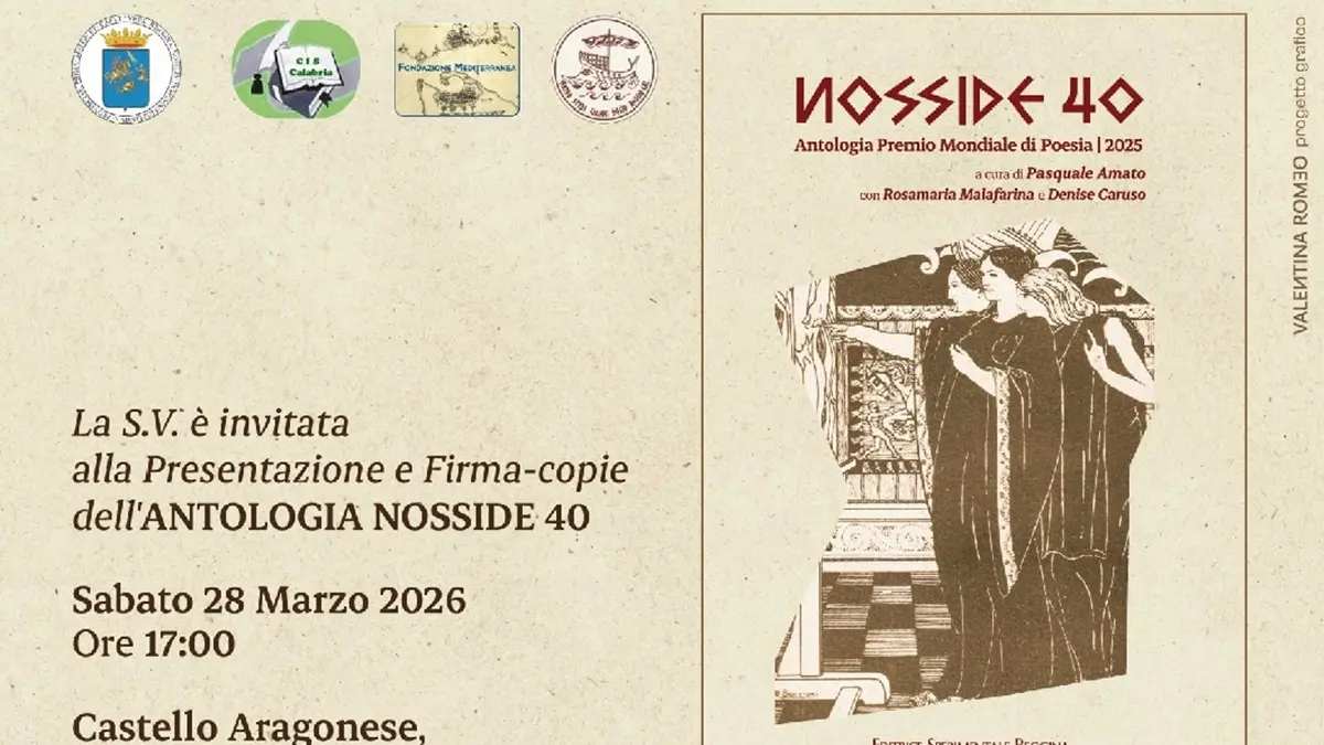 Dopo l'apertura delle iscrizioni il 21 marzo nel sito www.nosside.org e l'incontro del 22 a Bologna, il viaggio del Nosside 41 prosegue sabato 28 alle 5 della sera con la presentazione dell'Antologia Nosside 40 nel Castello Aragonese di Reggio Calabria.