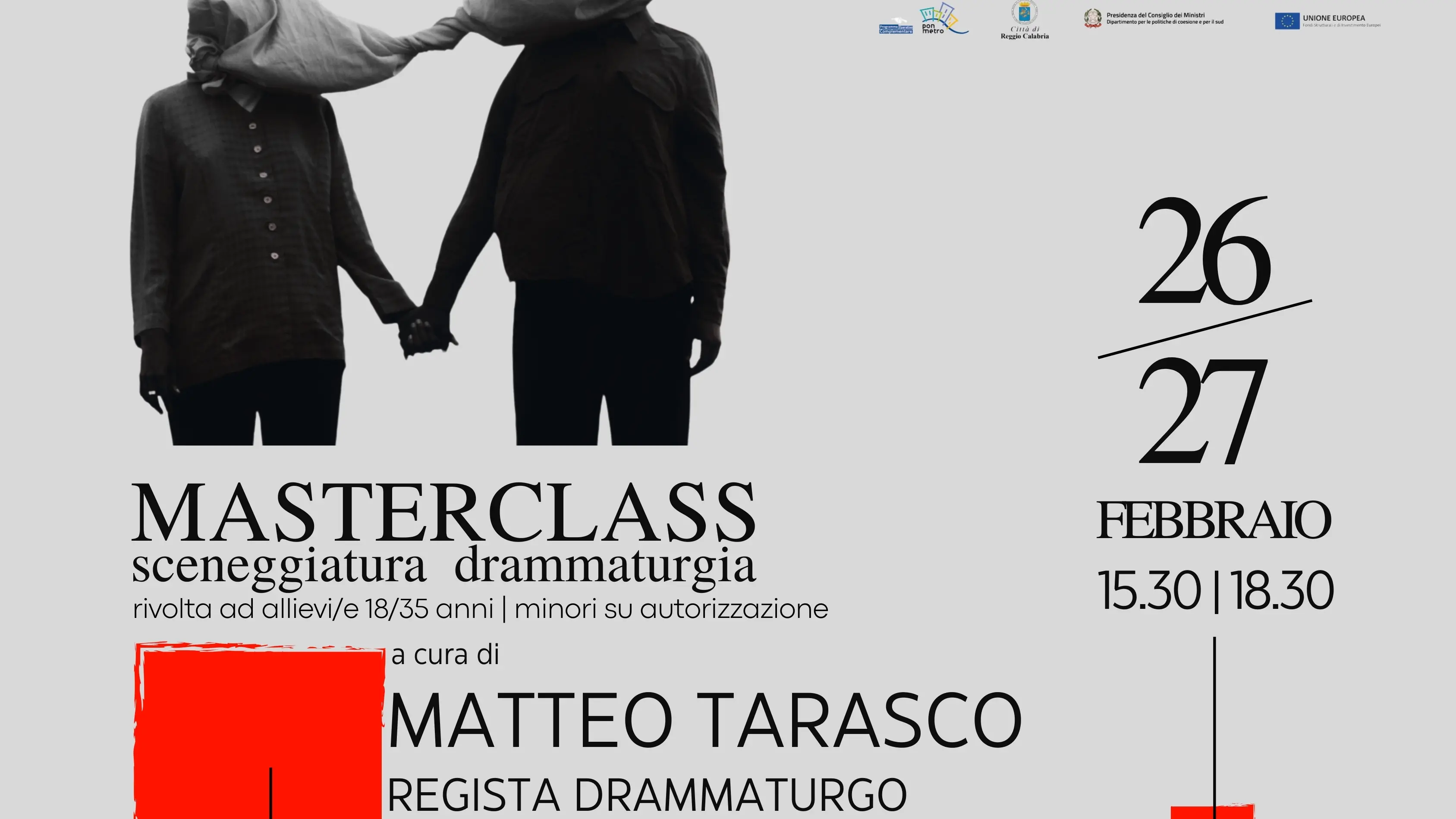 Il 26 e 27 febbraio l’Accademia di Belle Arti di Reggio Calabria ospiterà la Masterclass su sceneggiatura e drammaturgia curata dal regista Matteo Tarasco, un appuntamento formativo di alto profilo dedicato ai Miti dello Stretto e alle nuove prospettive dell’impresa teatrale contemporanea.