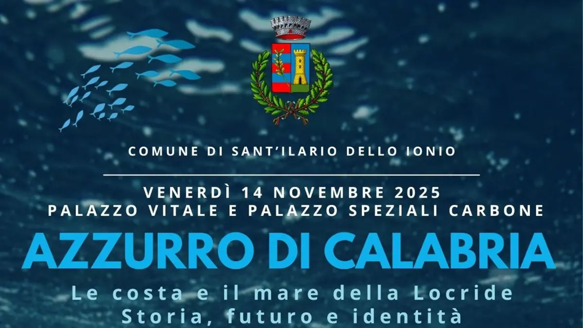 Approfondimenti, incontri con gli studenti, arte e musica, venerdì 14 novembre 2025, a Sant’Ilario dello Ionio, per “Azzurro di Calabria - Le coste e il mare della Locride - Storia, Futuro e Identità”, festival itinerante promosso dal comune di Portigliola, in partenariato con i comuni di Ardore, Bianco, Bovalino, Camini, Caulonia, Grotteria, Locri, Monasterace, Riace, Roccella Jonica, Sant’Ilario dello Ionio, Siderno, Stignano e Stilo, sostenuto dal Ministero dell’Agricoltura e della Regione Calabria.