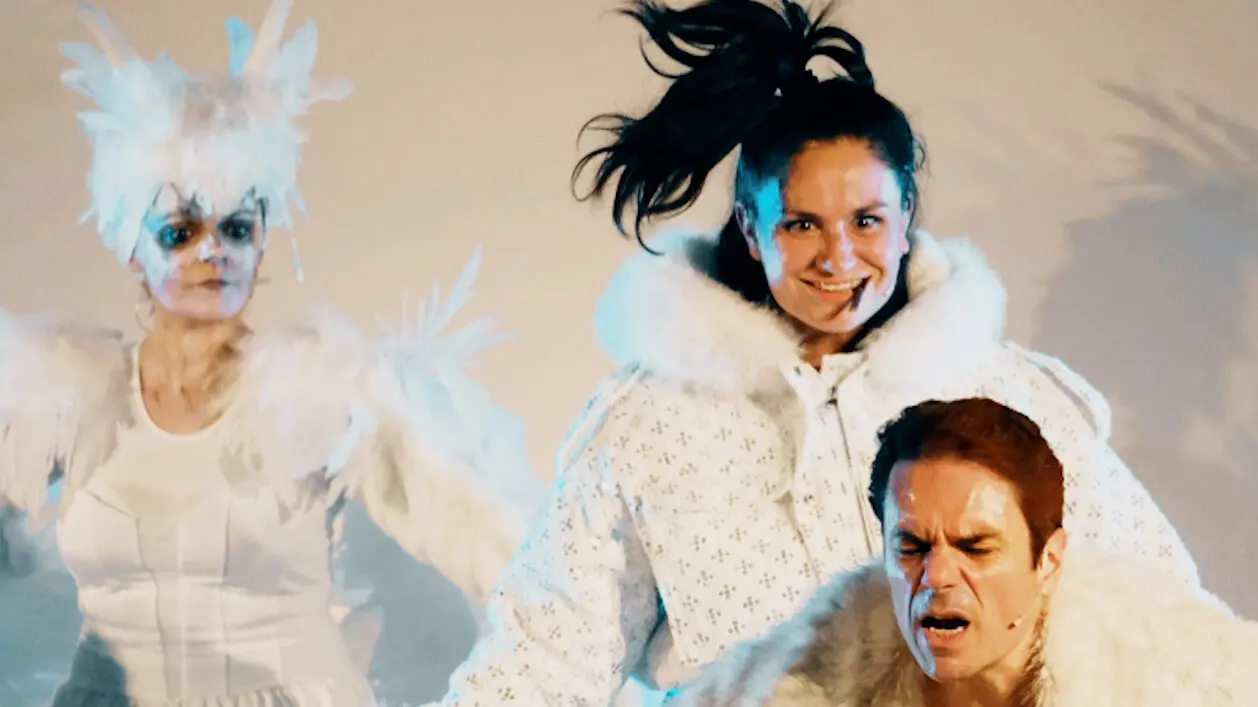 Senza tradire lo stile favolistico dell’opera, Kristina Mravcova nel ruolo di Louise, Maria Milasi nel ruolo di Thelma, Americo Melchionda nel ruolo dell’Upupa, restituiscono i protagonisti della pièce incarnando gli emarginati di ogni tempo, divenendo “profughi” di scenari apocalittici, stanziati al centro di uno “snodo migratorio perenne”, dove, nonostante tutto, si “avventurano” alla ricerca di un’utopica città, quella “città sognata” che, forse, non è ancora di questo mondo.