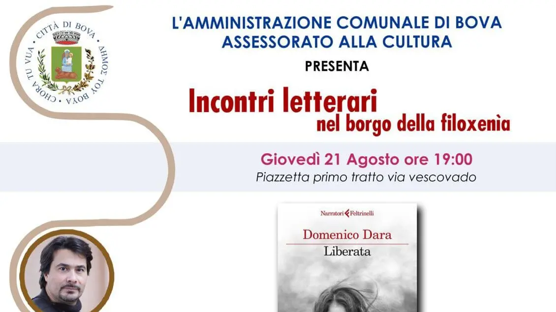 L’estate culturale di Bova si arricchisce oggi, giovedì 21 agosto, con un appuntamento speciale degli “Incontri letterari nel borgo della filoxenia”. Alle ore 19, nella piazzetta del primo tratto di via Vescovado, protagonista sarà lo scrittore Domenico Dara, che dialogherà con il pubblico sul suo ultimo romanzo “Liberata”, edito da Feltrinelli.