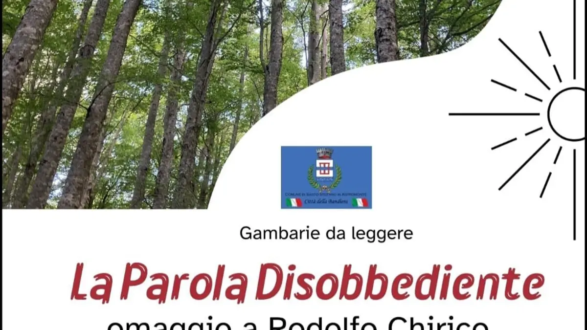 Un appuntamento imperdibile della rassegna Gambarie da Leggere sarà quello di giorno 19 agosto alla pinetina di Gambarie (accanto alla Chiesa) alle ore 17 con La Parola Disobbediente, ripercorrendo alcuni passi della sua vita e riascoltare la parola poetica del drammaturgo Rodolfo Chirico insieme a due sue allieve le attrici Sonia Caruso e Cinzia Messina, con lo scrittore e poeta Carlo Menga e con la scrittrice Daniela Scuncia.