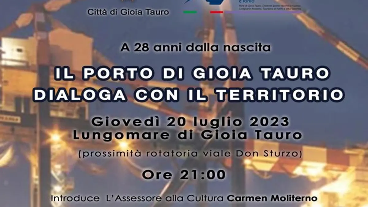 L’Amministrazione comunale di Gioia Tauro fa da padrona di casa nell’importante appuntamento con il porto, organizzato dall’Assessorato alla cultura, sul lungomare cittadino (in prossimità della rotatoria Viale Don Sturzo), per il prossimo 20 luglio, alle ore 21:00, durante il quale verrà presentato lo short film “Vedrai ciò che prima desiderasti. Nuove visioni in contrappunto tra passato e futuro, cultura e innovazione”, commissionato dall’AdSP dei Mari Tirreno Meridionale e Ionio, quale progetto di promozione dello scalo gioiese, nel più ampio contesto socio – culturale e paesaggistico nel quale s’innesta.