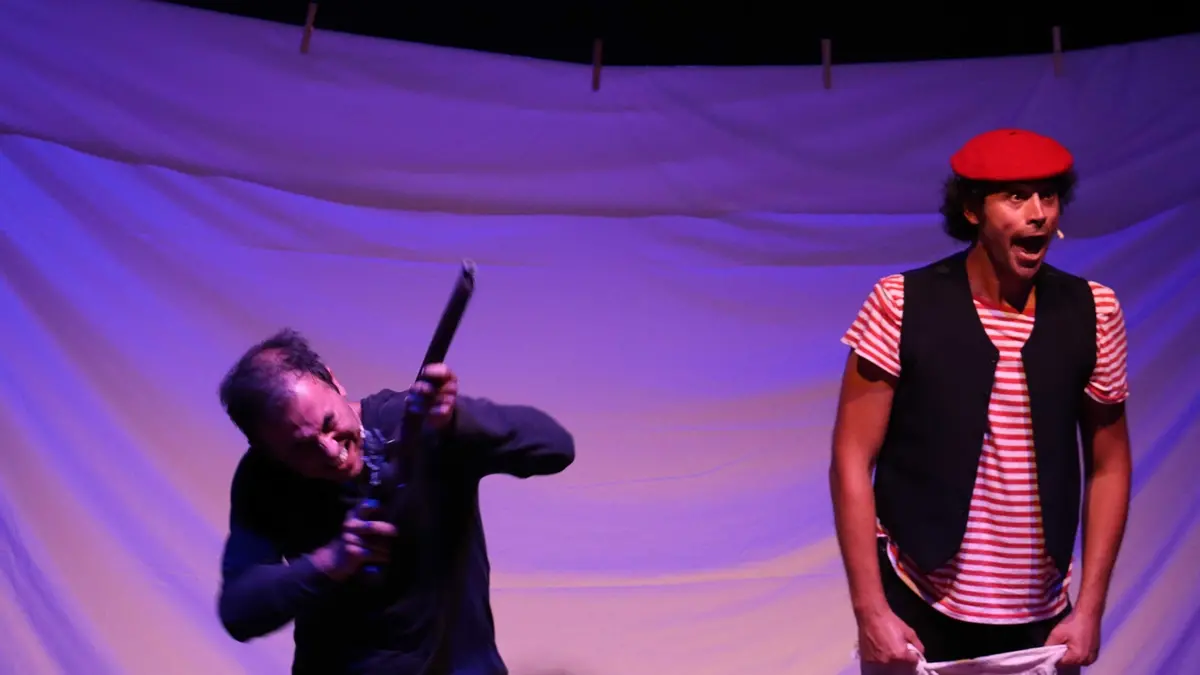 Giufà, ragazzino furbo e credulone, onesto e disonesto, triste e allegro, si caccia spesso nei guai, ma riesce quasi sempre a uscirne illeso. Le sue storie di sfortuna, sciocchezza e saggezza rivelano il suo atteggiamento irriverente, che sfugge alle convenzioni sociali e irride a qualsiasi autorità, alla paura, alla morte stessa. Una vocazione provocatoria che lo spettacolo sottolinea per restituire, in una clownesca interpretazione, tutto l’effetto catartico della sua figura.