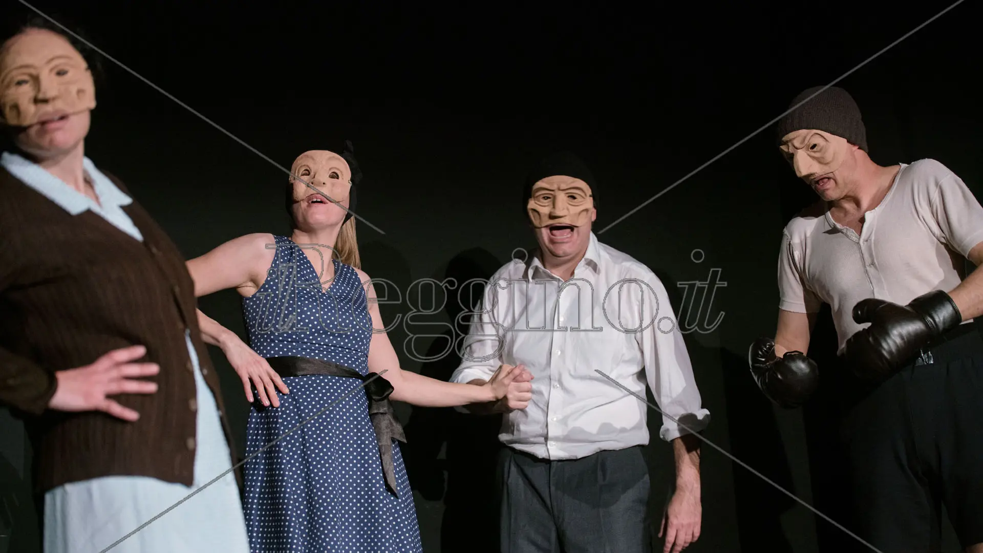 C’è amore, ambizione, disperazione in questa storia che i protagonisti portano avanti con le maschere sul viso, non sono le maschere della commedia dell’arte ma quelle antropomorfe che intercettano un nuovo codice, dietro alle quali c’è il decennale studio di Bonanni. Come spiegheranno gli autori, oltre a non distinguere i volti, pubblico si può identificare con la trasfigurazione.