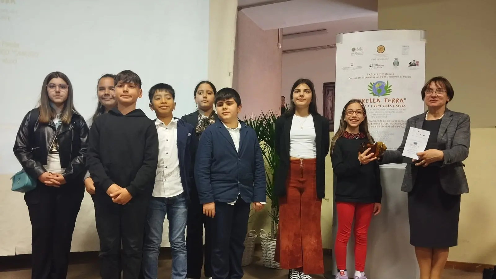 I vincitori, ossia i dieci alunni della classe Quinta A del Pascoli che hanno voluto spontaneamente partecipare alla competizione poetica, hanno conquistato il primo premio nella categoria “Poesia e Immagine” incentrata sulla tematica “Sorella Terra – le forme e i doni della natura” – esplorando e celebrando attraverso versi e immagini le meraviglie naturali di cui tutti noi possiamo godere ma che con gli occhi incantati dei bambini assumono forme ancora più vivide e potenti.I dieci giovani poeti, tutti di età compresa tra i 10 e gli 11 anni, Annamaria Battaglia, Eugenia Canale, Francesco Eleda, Alexandru Peter Gavrilă, Lamyae Hassari, Prince Kunkar, Alessandro Nordo, Mariangela Otomega, Natali Rokhvadze e Giorgia Santacaterina, guidati sapientemente dalla maestra Francesca Zimbalatti, hanno dimostrato un’impressionante sensibilità e maturità nel trattare argomenti di grande attualità come l’ecologia e il riciclo, una sensibilità che ha colpito ed emozionato la qualificata giuria dell’Accademia della Poesia.