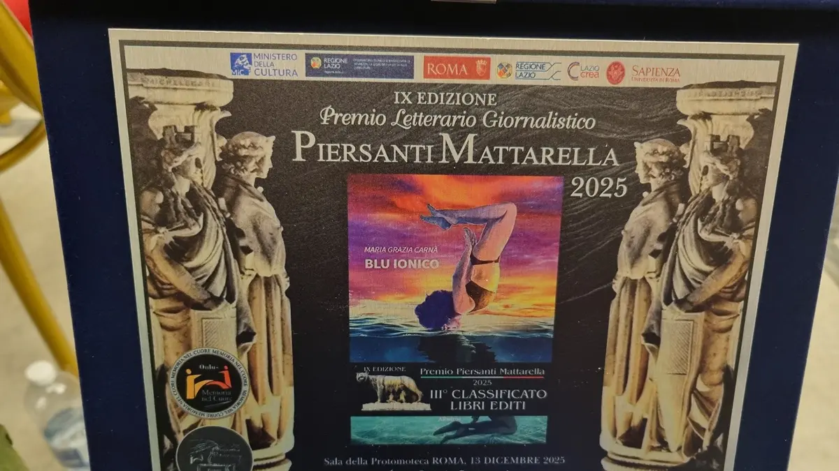 A Roma la scrittrice reggina Maria Grazia Carna si è aggiudicata il prestigioso Premio Letterario Nazionale “Piersanti Mattarella” per la sezione Libri Editi con la sua opera d’esordio “Blu ionico”. La cerimonia di premiazione si è tenuta a Roma, in una cornice istituzionale che ha celebrato l’impegno civile e il valore della parola.
