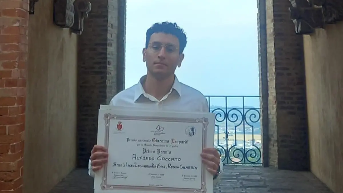 Con questa motivazione, e il giudizio massimo del 10 e lode che non era stato mai assegnato nelle edizioni precedenti, Alfredo Marco Caccamo, studente della V^ O del liceo scientifico Leonardo da Vinci di Reggio si è classificato primo al premio Giacomo Leopardi, concorso riservato agli studenti del triennio delle scuole secondarie di secondo grado, indetto dal Centro Nazionale di Studi Leopardiani di Recanati. La prova finale ha avuto luogo ieri nella città dell’Ermo colle, dove a contendersi il podio sono stati 17 candidati tra i quali, per la Calabria, Alfredo Marco Caccamo. Ad accompagnare il giovane talentuoso la docente Fiorenza Pannuti.