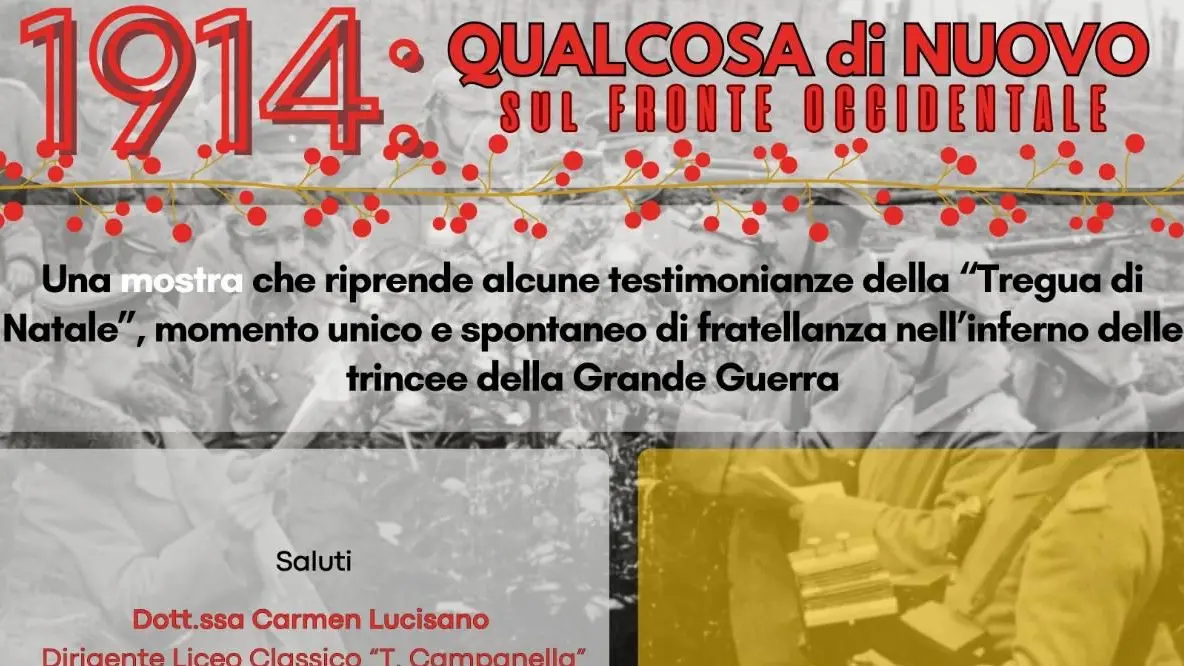 Dicembre 1914, Ypres (Belgio). Il conflitto è iniziato da cinque mesi e gli scontri si sono trasformati in una logorante guerra di posizione. Si combatte ininterrottamente. Nella notte di Natale avviene qualcosa di inimmaginabile: una tregua. Non viene stipulata dai comandanti dei due schieramenti: si tratta una tregua spontanea decisa dai soldati. La notte di Natale qualcuno intona canti della tradizione natalizia. I soldati si rendono conto che nelle trincee avversarie le melodie sono le stesse e qualcuno propone di smettere di sparare. I nemici escono allo scoperto, si parlano, si stringono la mano, si abbracciano, si scambiano gli auguri, i doni e i ricordi di un tempo di pace. Si rende onore ai caduti con una funzione funebre la mattina di Natale. Un evento di queste proporzioni non si è mai più ripetuto nella storia e sarebbe bellissimo se, in tempi lacerati come quelli che stiamo vivendo, potesse ripetersi.