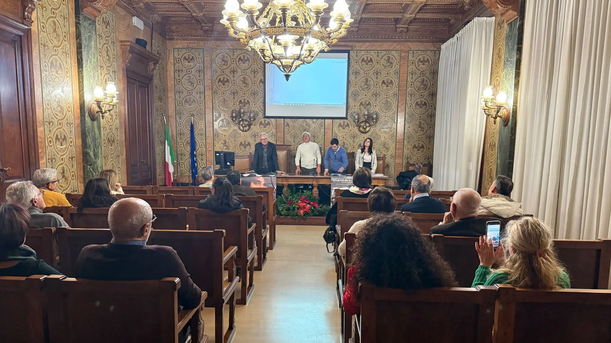 La proiezione è stata preceduta da un incontro con la stampa a cui hanno partecipato i produttori, il regista, gli attori impiegati nella parte “fiction”, nonché il padrone di casa, il presidente della Camera di Commercio di Reggio Calabria, dott. Antonio Tramontana.
