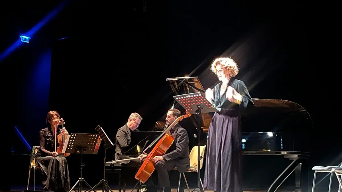 “Che sia l’amore tutto ciò che esiste. É ciò che noi sappiamo dell’amore. E può bastare che il suo peso sia uguale al solco che lascia nel cuore”. Questi versi e poi l’altrettanto celebre Valzer dei Fiori hanno coronato l’emozionante viaggio che Lucrezia Lante della Rovere ha compiuto, accompagnata da Patrizia Bettotti al violino, Giancarlo Trimboli al violoncello e Corrado Ruzza al pianoforte. Un viaggio tra Le stagioni di Cajkovskj e le poesie di Emily Dickinson che ha fatto tappa al teatro Manfroce di Palmi, nell’ambito della rassegna Synergia 49, organizzata dall’associazione culturale Manfroce di Palmi, presieduta da Antonio Gargano, e finanziata con l’avviso pubblico Promozione Eventi Culturali 2024 della Regione Calabria. Impersonando donne molto diverse tra loro, volando come un pettirosso su campi di gelsomini e come un’ape tra i fiori di ginestra, Lucrezia Lante della Rovere è stata una “Una donna per tutte le stagioni”.