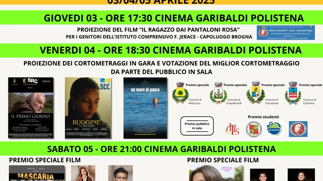 In questa tre giorni, sarà assegnato il Premio speciale al film “Mascaria” con la presenza degli attori Fabrizio Ferracane, Manuela Ventura, Costantino Comito, Flavia Orecchio e al film evento d’incassi “Il ragazzo dai pantaloni rosa” e i protagonisti Samuele Carrino e Sara Ciocca saranno a Polistena per incontrare gli studenti.