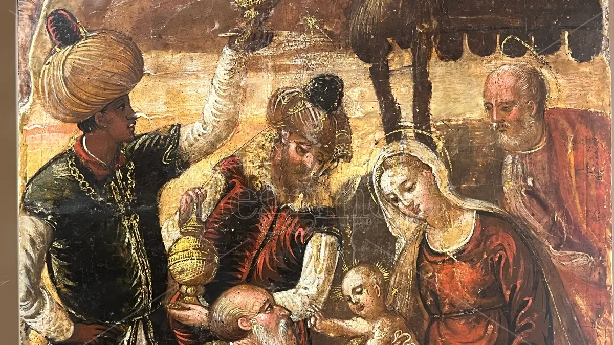 «La Vergine siede sotto il baldacchino. Alle sue spalle Giuseppe, sulle ginocchia il Bambino che si tende verso uno dei Magi inginocchiato ai suoi piedi. Gli altri due, in piedi e abbigliati con vesti di foggia orientale, porgono i doni». Nel catalogo dei Beni culturali del Ministero ecco una delle descrizioni dell’Epifania legata alla città di Reggio Calabria. Alla pinacoteca civica è esposto, infatti, il dipinto risalente alla seconda metà del 1500 e raffigurante appunto l’“Epifania. Adorazione dei Magi”.