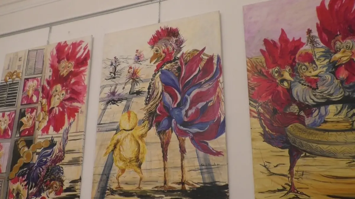 Canale, infatti, nelle sue opere indaga in maniera del tutto personale il carattere e le caratteristiche umane “restituendole” sotto forma animale. Gallus, questo il titolo della personale, ha portato in scena “personaggi e persone”, scene familiari e concetti narrati attraverso creste, becchi e piume sgargianti. La sua tavolozza cromatica è un contrasto di colori accesi, quasi abbaglianti che non lasciano scampo allo sguardo. Tele piene, colme di racconti e visioni.