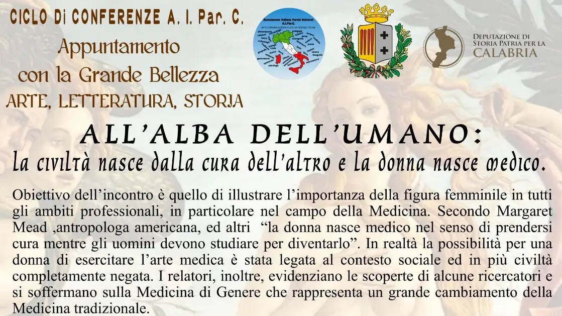 La civiltà nasce dalla cura dell’altro e la donna nasce medico. Obiettivo dell’incontro è quello di illustrare l’importanza della figura femminile in tutti gli ambiti professionali, in particolare nel campo della Medicina.