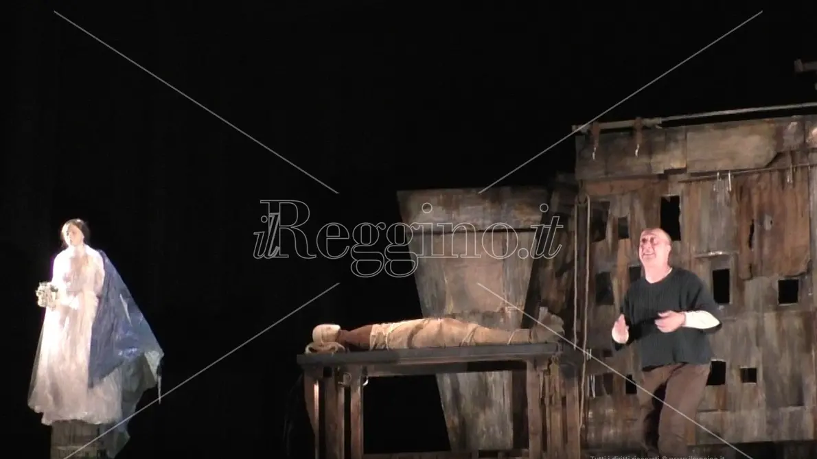 Scritta e diretta da Massimo Barilla e Salvatore Arena, che è anche l’interprete, “F-Aida” è una storia buia in cui la luce entra attraverso le note delle opere liriche che irrompono sulla scena e la attraversano. Ma è una luce che non basta. Non basta a salvare l’uomo sulla scena come nella vita pur se a sprazzi è certamente capace di alleviare il dolore di quelle ferite sempre aperte, di ricucire il cuore sempre a pezzi, di ridurre il vuoto delle voragini dell’anima. Nella Calabria degli anni Ottanta, ma forse non solo la Calabria e non solo degli anni Ottanta, Salvatore Arena, che si conferma interprete di straordinaria potenza emotiva e scenica, è Rocco, innamorato di Alfredo, divenuto Aida in quella metamorfosi grazie alla quale riesce a sopravvivere nello spazio angusto in cui il padre, temendo l’onta di un figlio omosessuale, lo ha segregato. In questa gabbia in cui cresce e muore, Rocco scopre la musica lirica. Essa scandirà quell’ultimo tratto di strada che è anche quello che Rocco condivide con il pubblico, che comparteciperà della irreversibile dipartita.