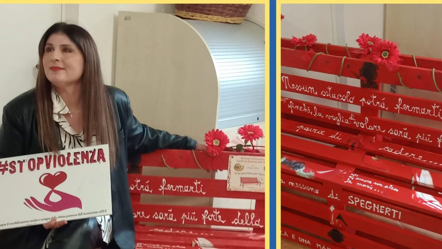 Gli allievi che hanno aderito al progetto “Una Panchina per Sperare” si sono cimentati, con l’aiuto dei docenti di riferimento, nella decorazione di una panchina, consegnata dall’associazione nel mese di ottobre, costruita con materiali di scarto, delle semplicissime pedane che sono state trasformate in una panchina e in un’opera d’arte diventata l’emblema contro la Violenza sulle Donne della scuola Primaria plesso Catona Centro, coniugando un doppio messaggio di sensibilizzazione quello socio-culturale della non violenza verso le donne e quello ambientale, nel rispetto e tutela di ciò che ci circonda. Gli studenti che invece hanno aderito al concorso artistico, hanno intrapreso un percorso formativo, insieme alle docenti di riferimento, che si è concluso con la creazioni di manufatti artistici iscritti poi al concorso.