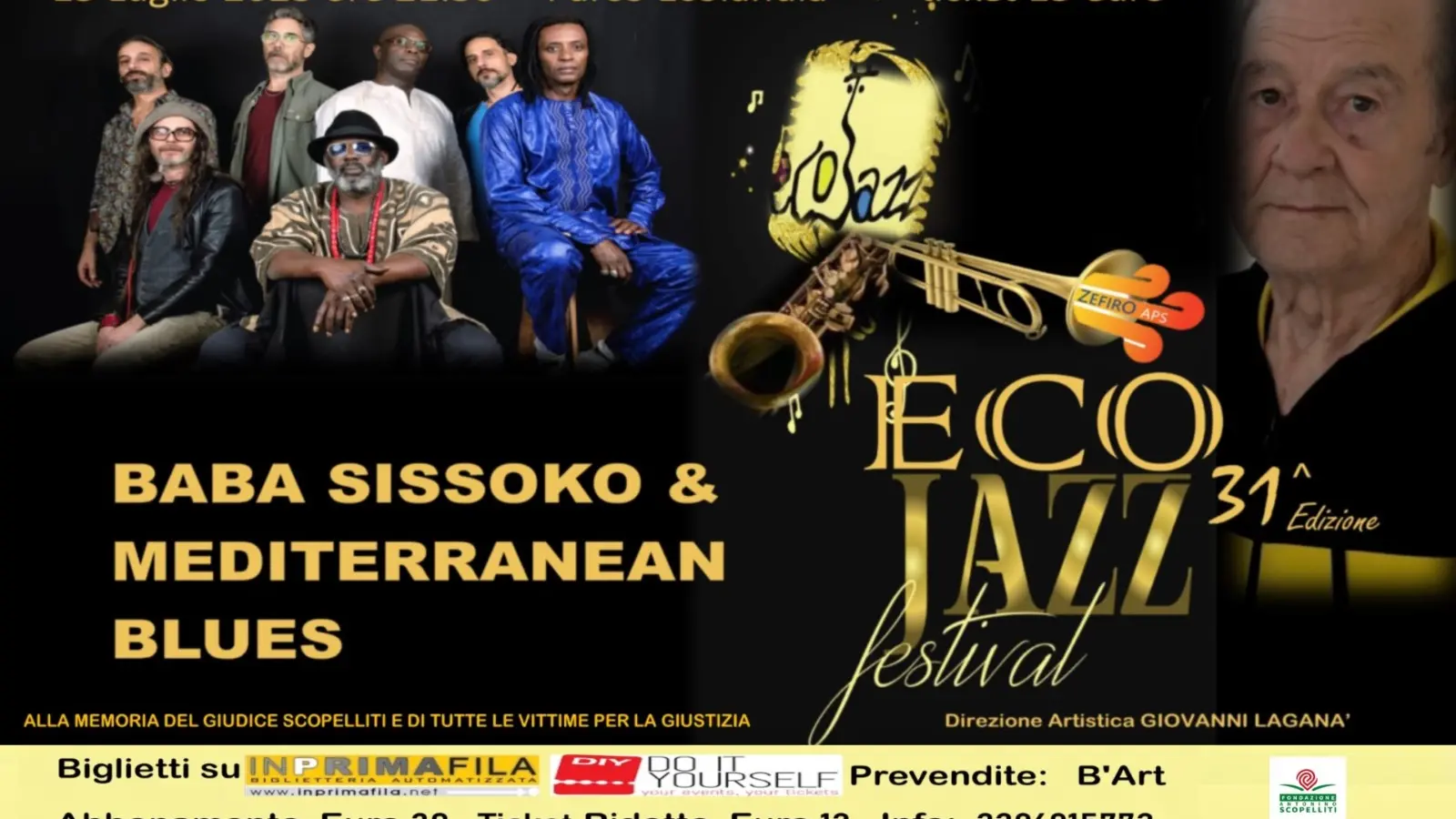 Sabato 15 luglio e domenica 16 luglio Ecojazz Festival 31^ edizione prosegue con un doppio prestigioso appuntamento nella cornice del suggestivo anfiteatro del Parco di Ecolandia, località Arghillà (RC). Concerto del 15 LUGLIO ORE 21.30 – BABA SISSOKO & MEDITERRANEAN BLUES