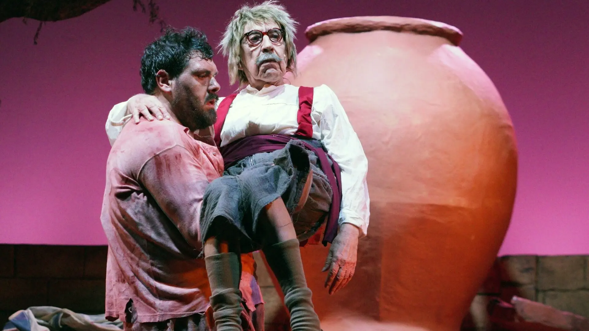 Come non ricordare la condanna del fanatismo bestiale dei Giganti della montagna. L’uomo nella corsa al benessere della materia incapace di accogliere, di sentire valori spirituali quali quelli dell’arte. Pure nella novella del 1908 e nella commedia del 1917, ancora lontana dal Mito de I giganti, con la feroce comicità e il caustico umorismo poggiato sul letto popolare della sua ambientazione, la vicenda de La Giara porta con sé il corpo esistenziale di un Pirandello che mai ha smesso di narrare e mostrare il suo profondo bisogno spirituale di dare una ragione alla contraddizione costante della vita.