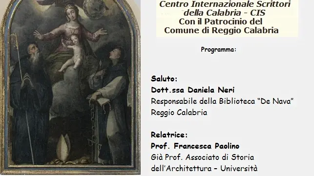Dopo i saluti di rito di Daniela Neri, responsabile della biblioteca “De Nava”, e di Loreley Rosita Borruto, presidente del CIS della Calabria, con il contributo di slides relaziona Francesca Paolino, già prof. associato di Storia dell’Architettura, Università Mediterranea di Reggio Calabria, componente del Comitato Scientifico del CIS della Calabria.