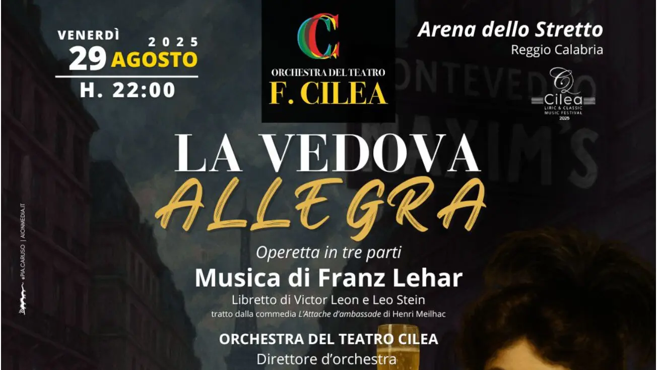 Quando si parla di operetta il primo titolo che viene in mente è “La Vedova Allegra” di Franz Lehar, il titolo che probabilmente più di ogni altro fa appassionare anche i non frequentatori delle sale di Teatro (quello lirico per intenderci). Dopo l’enorme successo della “Cavalleria Rusticana” di sabato scorso torno la lirica in Arena. L’operetta in tre parti avrà sul palco numerosi artisti, protagonisti con carriere prestigiose ed internazionali e tanti artisti locali per i ruoli secondari, un appuntamento importante per il pubblico reggino che potrà assistere ad un’operetta nella sua forma più completa, con il suono di una grande orchestra sinfonica dal vivo, cosa non molto frequente in questo repertorio. Per la direzione del M° Claudio Cohen, e con la Regia di Antoniu Zamfir, ecco il cast: Hanna Glawari Marily Santoro, Danilo Danilowitsch Raffaele Facciolà, Valencienne Eleonora Pisano, Camille de Rossillon Davide Benigno, Mirko Zeta Enzo Crucitti, con l’iconica partecipazione per il ruolo di Njegus dell’attore reggino Gigi Miseferi.