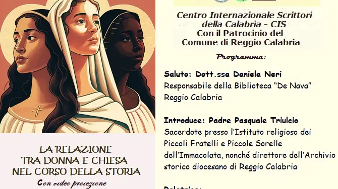 Martedì 4 marzo 2025, alle ore 16:45 presso la Biblioteca Villetta “P. De Nava”, il Centro Internazionale Scrittori della Calabria, con il patrocinio del Comune di Reggio Calabria, promuove la conferenza “La relazione tra donna e Chiesa nel corso della storia”.