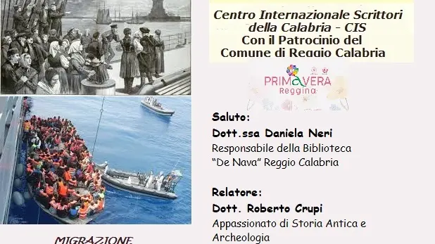 Nell’ambito degli incontri inseriti nella “Primavera Reggina 2025” promossa dal Comune di Reggio Calabria, martedì 29 aprile 2025, alle ore 16:45 presso la Biblioteca Villetta “P. De Nava”, il Centro Internazionale Scrittori organizza la conferenza “Migrazione tra storia e cronaca”.
