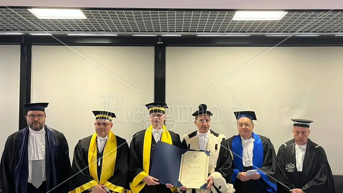 Quindi la consegna della pergamena a cura del rettore della Mediterranea, Giuseppe Zimbalatti.