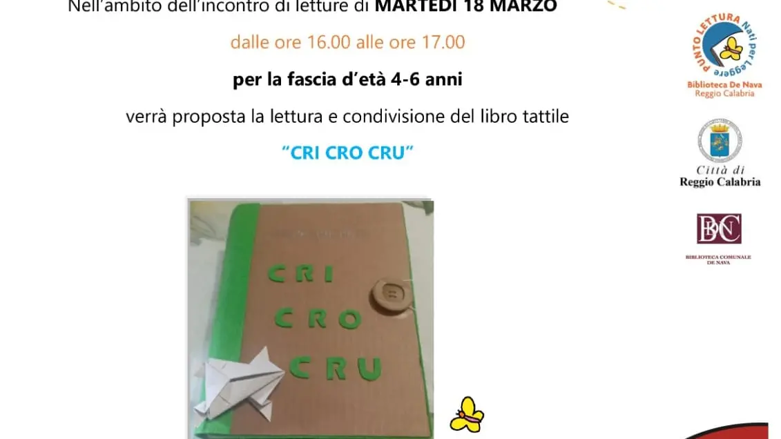 Presso la Sala Ragazzi, i bambini avranno l’opportunità di scoprire una storia “che si tocca”: il racconto di Cri Cro Cru, un libro pensato per stimolare l’esperienza sensoriale della lettura.