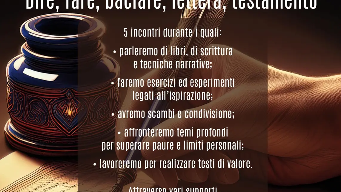 Partirà il 26 aprile il nuovo laboratorio di scrittura e tecniche narrative dal titolo “Dire, fare, baciare, lettera testamento”, tenuto dalla dott.ssa Amalia Papasidero, editor, e counselor, presso la libreria Laruffa Editore, di Reggio Calabria, in via Dei Tre Mulini, 14.