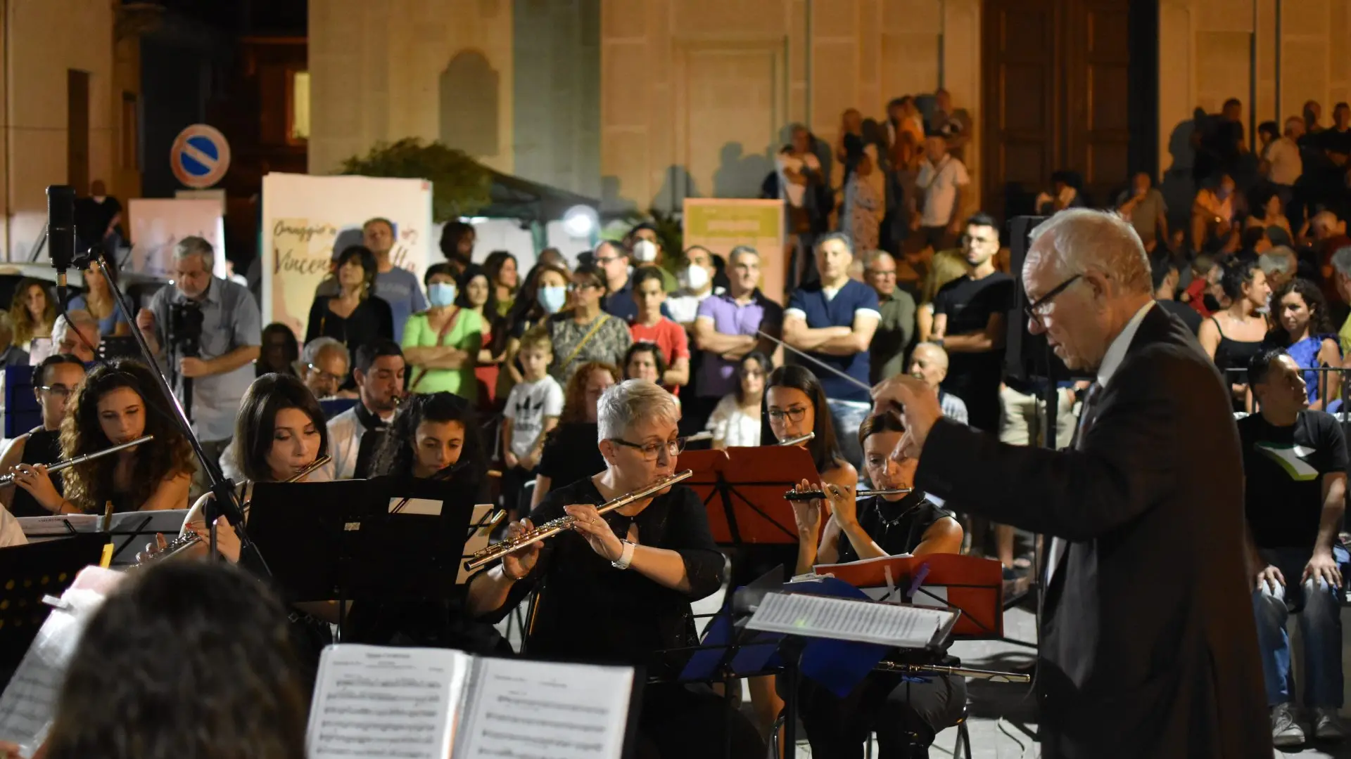 La splendida giornata all’insegna della musica, si è conclusa in serata con un concerto evento, in piazza Chiesa che ha visto impegnati oltre cinquanta musicisti, tra cui molti ex allievi del M° Leotta, diretti da tre maestri d’eccezione: Antonino Sorgonà, direttore emerito del Conservatorio “F. Cilea” di Reggio Calabria, il M° Antonino Schiavone, attualmente alla guida della storica Filarmonica di San Demetrio e il M° Alessandro Monorchio con la partecipazione del primo corno della London Symphony Orchestra e della Royal Philarmonic Orchestra di Londra, M° Vittorio Schiavone.