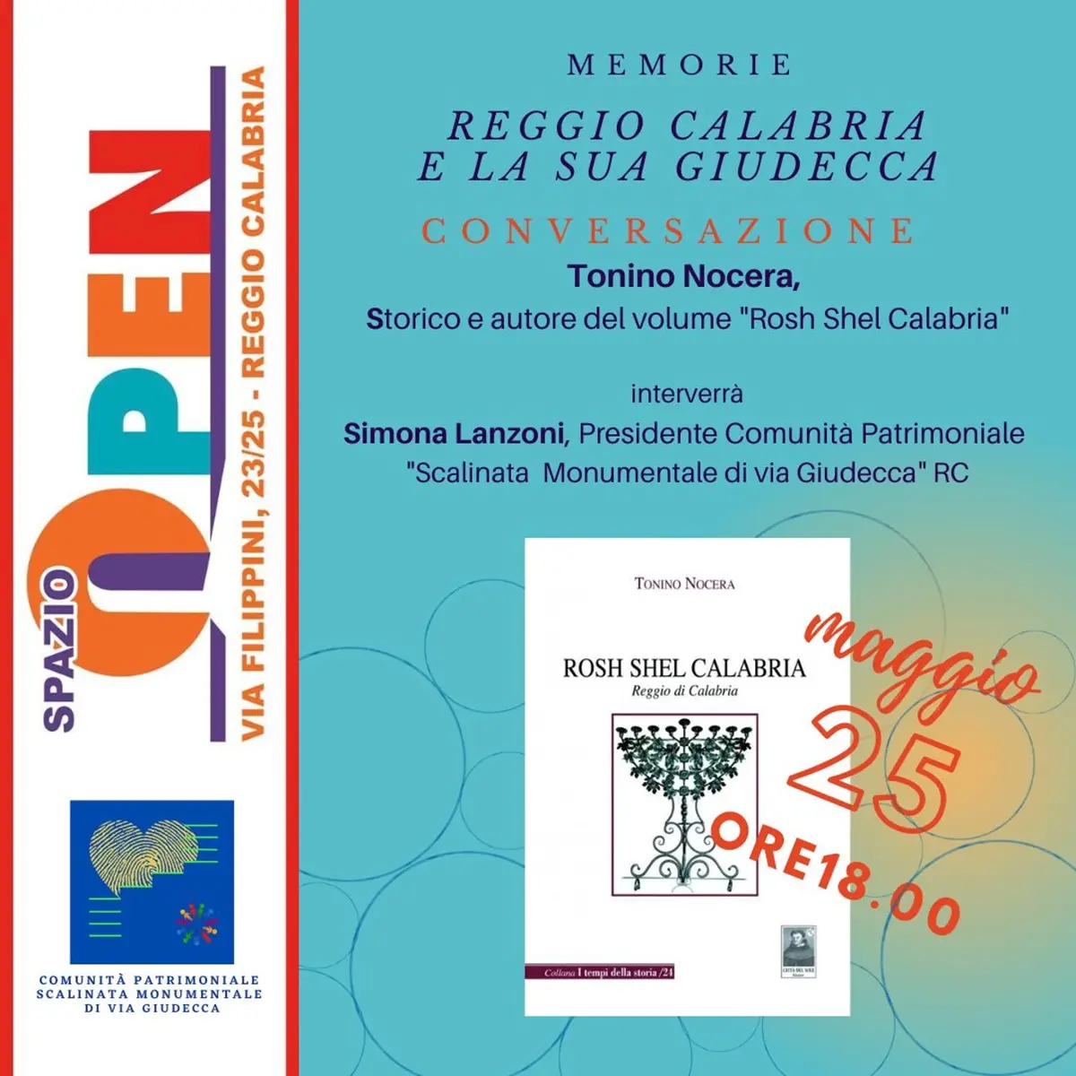 Nella stessa giornata, alle ore 18:00, nell’ambito dell’iniziativa “Maggio-mese del libro”, la Comunità patrimoniale della Scalinata di Via Giudecca in collaborazione con Spazio Open e presso la loro sede ha organizzato una conversazione con lo storico Tonino Nucera, autore del volume “Rosh Shel Calabria”.
