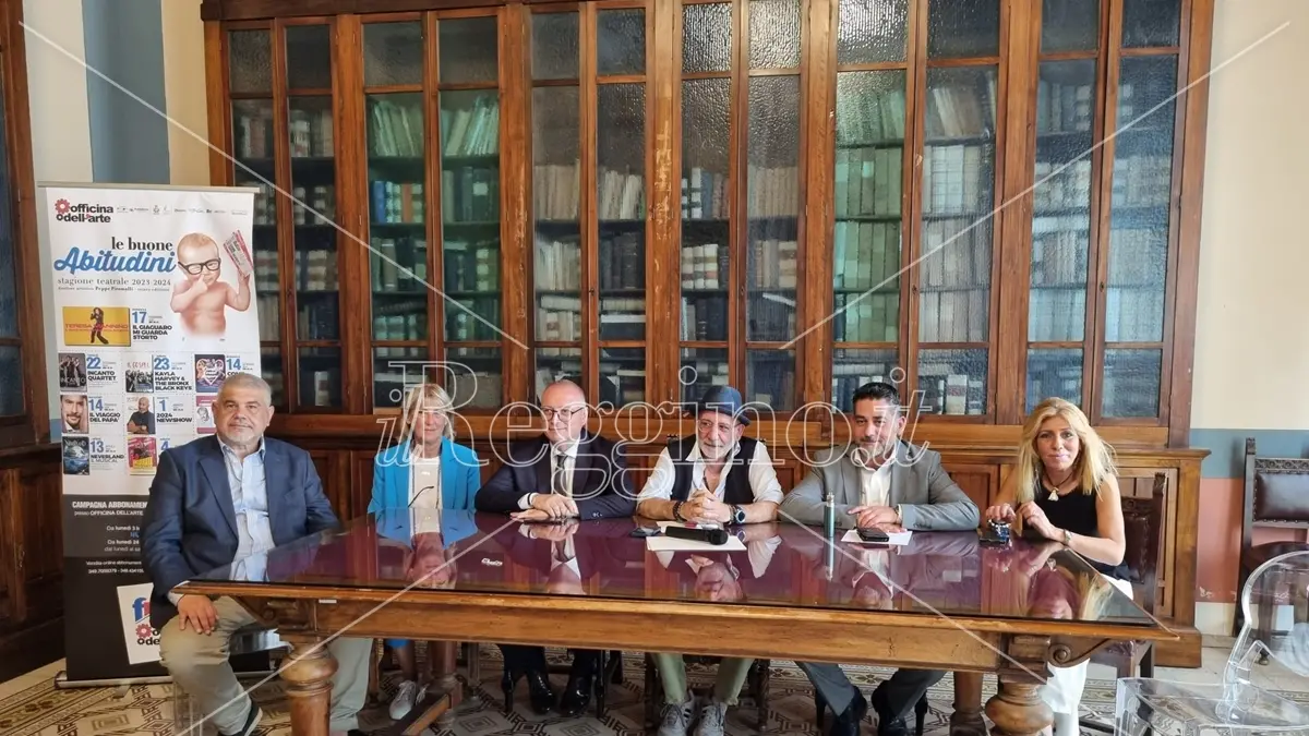 L’Officina dell’Arte spalanca le porte alla città di Reggio e accoglie il pubblico che la segue con passione per presentare la nuova stagione. Gli spettacoli del cartellone teatrale dell’associazione culturale di Peppe Piromalli animeranno il Cilea dal 17 dicembre al 25 maggio 2024. stamattina a palazzo Alvaro la presentazione dei tanti eventi raccontati dal direttore artistico Piromalli, coi due sindaci facenti funzione Carmelo Versace per Metrocity e Paolo Brunetti per il Comune di Reggio, affiancati dai presidenti delle realtà associative BiEsse con Bruna Siviglia, Nino Aloi, Katia Romeo per Lumaka.