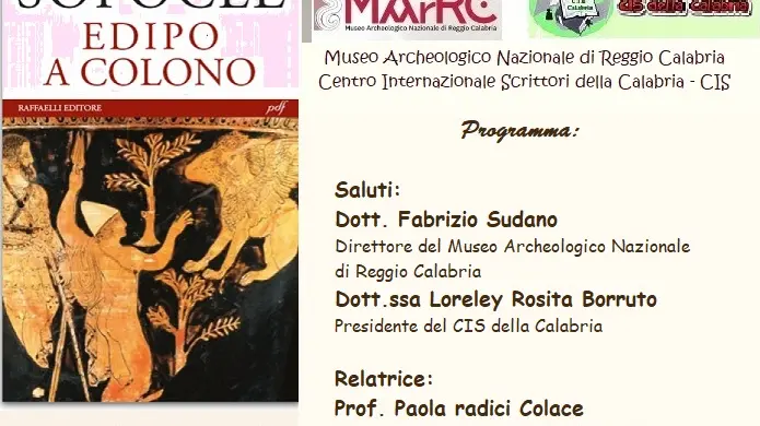 Venerdì 14 marzo 2018, alle ore 17.30, presso il Museo Archeologico Nazionale di Reggio Calabria, lo stesso Museo e il Centro Internazionale Scrittori della Calabria, promuovono la conferenza “Edipo a Colono” di Sofocle.