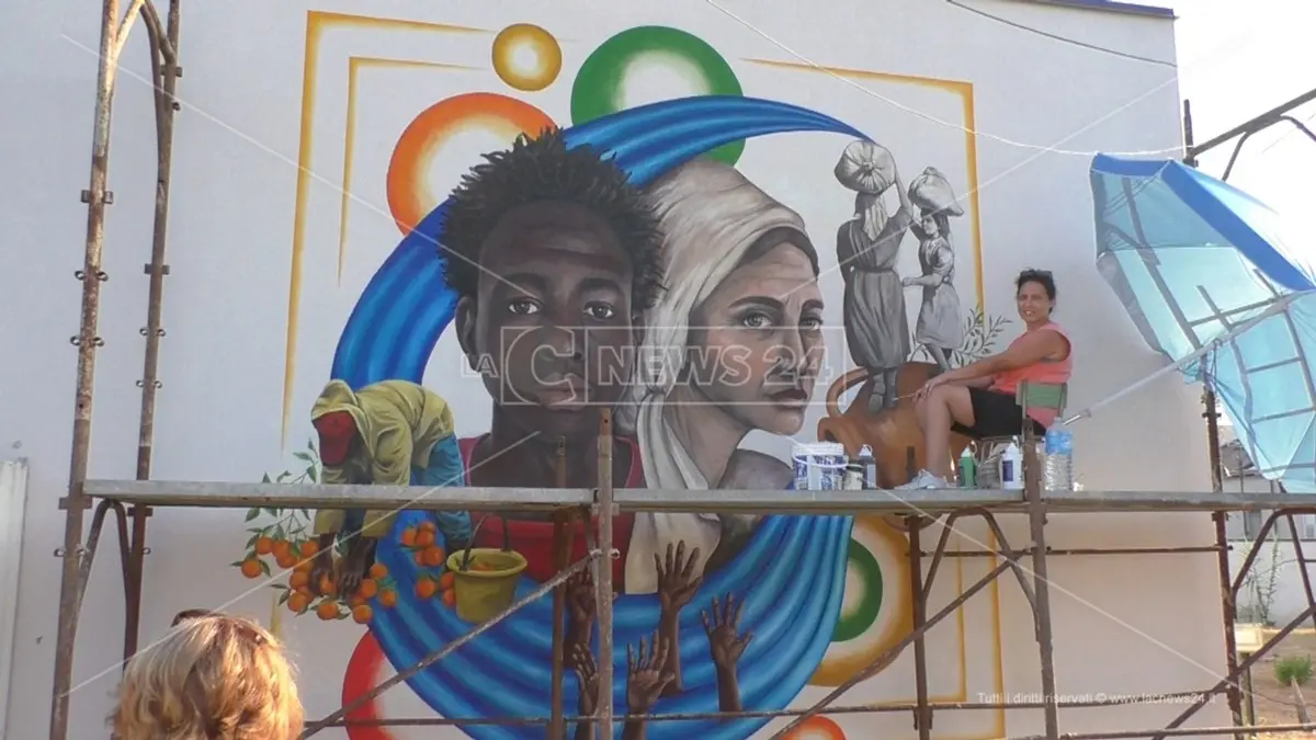 «Avevo realizzato un piccolo murales sul perimetro di una mia proprietà – aggiunge – che si trova lungo una via molto trafficata: è piaciuto al punto che il Comune ha voluto coinvolgermi». Nel murales si vedono due volti, uno è di un lavoratore africano – Soumaila Sackò, il bracciante che viveva nella tendopoli sanferdinandese e che venne ucciso a San Calogero – l’altro è quello di una donna. «La cudespina – chiarisce Sarà – rappresenta la forza e l’umiltà delle donne calabresi, in questo disegno passato e presente di San Ferdinando si uniscono in nome del lavoro».