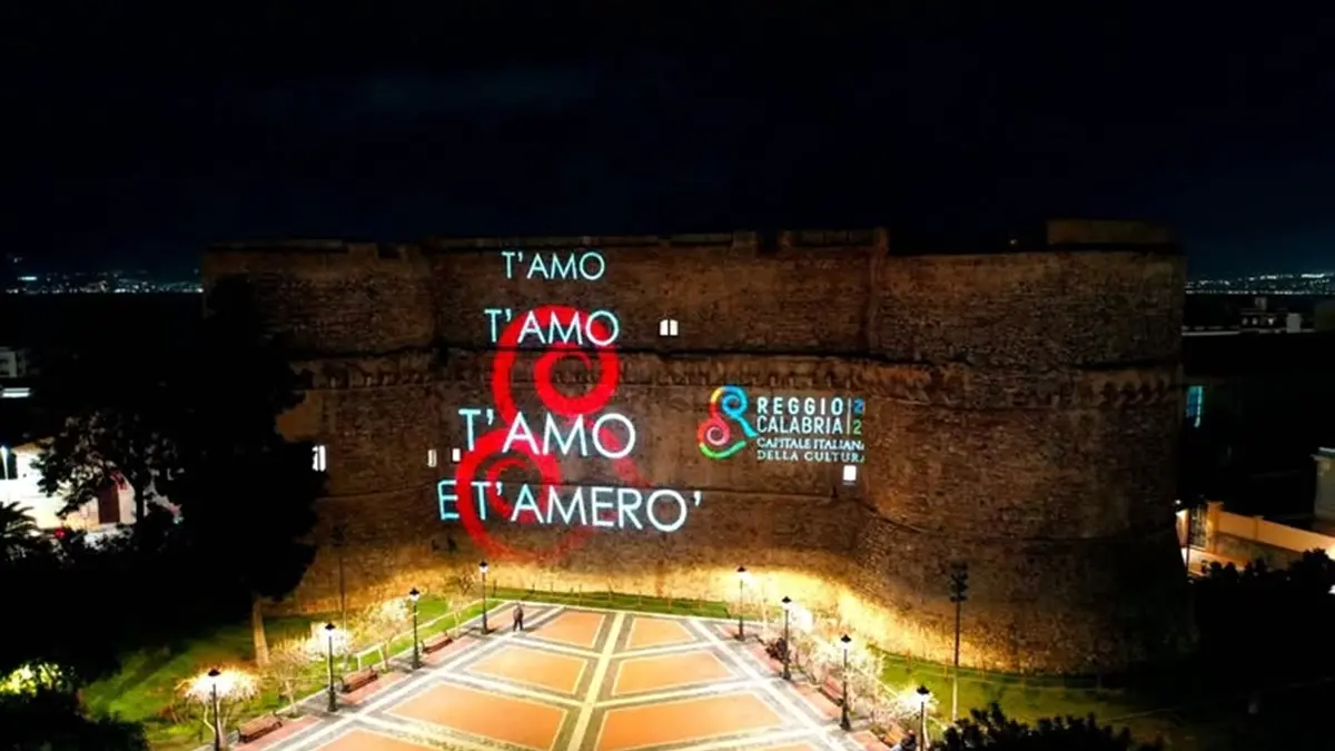 «Buon San Valentino Reggio, T’amo t’amo t’amo e t’amerò…». Una dichiarazione d’amore per Reggio Calabria campeggia sul Castello Aragonese, in pieno centro storico, ad impreziosire questa giornata degli innamorati che ormai volge al termine. Accanto il logo benaugurante di Reggio Capitale della Cultura 2027, la sfida che sta impegnando il Comune e tutta la rete attivatasi per concorrere al meglio per questo ambito e prestigioso riconoscimento.