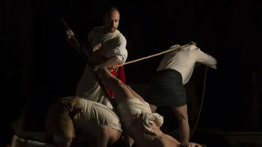 Lo spettacolo, nato da un’intuizione della regista napoletana Ludovica Rambelli, si basa sulla tecnica dei tableaux vivants – letteralmente “quadri viventi” – una pratica di origine settecentesca riportata in vita proprio grazie al lavoro della compagnia. In scena, gli attori ricreano con straordinaria precisione fino a 23 celebri dipinti di Caravaggio, utilizzando esclusivamente i propri corpi, pochi oggetti quotidiani e sapienti giochi di luce. Il risultato è un susseguirsi di immagini potenti e statiche, che si compongono lentamente sotto gli occhi dello spettatore, illuminate da un unico taglio di luce capace di evocare il celebre chiaroscuro caravaggesco. Il ritmo è scandito dalle musiche di Mozart, Bach e Vivaldi, mentre i cambi scena avvengono a vista, accentuando il senso di trasformazione continua. Non è semplicemente teatro, né soltanto pittura: è un incontro sospeso tra due arti che si fondono fino a diventare un’unica esperienza visiva ed emotiva.