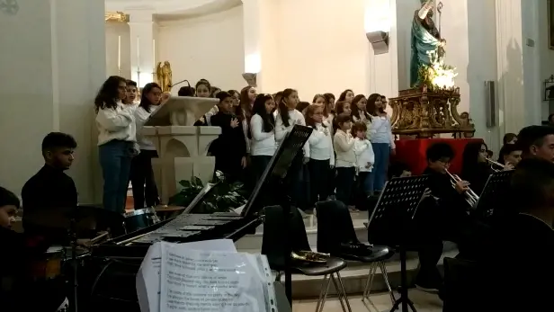 Prima del concerto si è svolta la Santa Messa presieduta dal parroco don Fortunato Sciglitano, con gli interventi del l’orchestra Junior Band e del coro di Voci Bianche della scuola. Anche le letture e le preghiere dei fedeli sono state lette dai ragazzi e curate dalla prof.ssa di religione Cettina Trimarchi.La solenne celebrazione eucaristica e l’intera manifestazione sono state dedicate al piccolo Giovanni Laina’, ex alunno della scuola di Laureana recentemente scomparso alla tenera età di 13 anni.