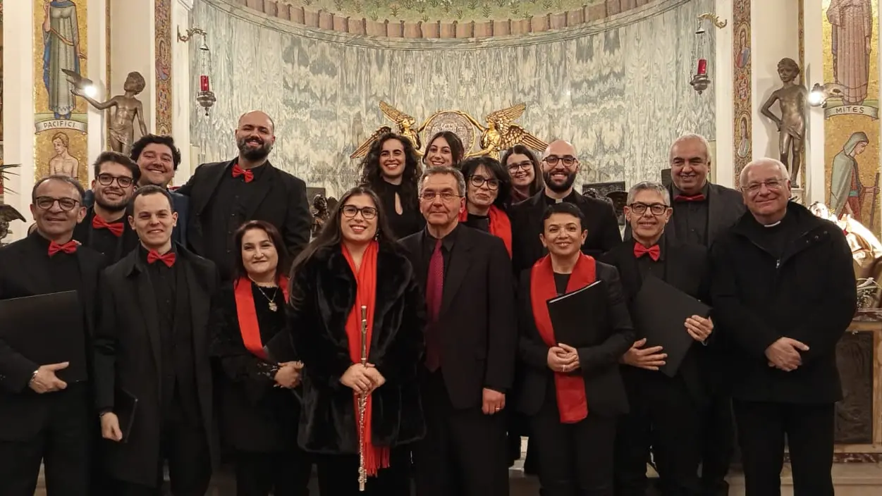 Particolarmente significativo l’intervento degli ensemble vocali, che hanno presentato un arrangiamento inedito di Adeste Fideles e la complessa sequenza a sei voci Christus est qui natus hodie del Cardinale Domenico Bartolucci. Per l’occasione, il brano è stato eseguito a sette voci, con un triplice basso in ottava grave, scelta interpretativa voluta dal maestro di coro Thomas Marra e dal basso M° Franco Arena.