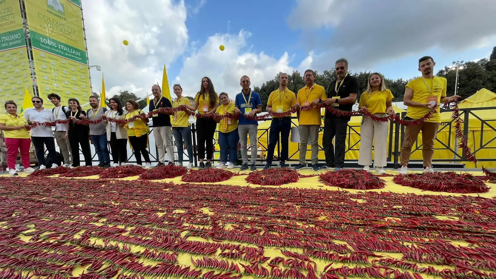 Record era stato annunciato e record è stato. Al villaggio contadino di Coldiretti al Circo Massimo a Roma, la Coldiretti Calabria, ha realizzato una collanadi peperoncino Diavolicchio di Diamante ecotipo calabrese da ben 530 metri. La composizione della collana, è avvenuta alla vigilia della Giornata mondiale dell’alimentazione a sostegno della candidatura italiana a patrimonio dell’Unesco nell’ultima giornata del Villaggio contadino al Circo Massimo con il Ministro delle Imprese e del Made in Italy Adolfo Urso e il Ministro dell’Agricoltura e della Sovranità Alimentare Francesco Lollobrigida.