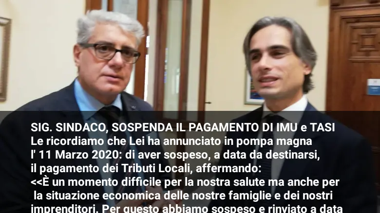Le ricordiamo che Lei ha annunciato in pompa magna l’ 11 Marzo 2020: di aver sospeso, a data da destinarsi, il pagamento dei Tributi Locali, gradiremmo che mantenesse la sua promessa fatta ai cittadini» conclude Pizzimenti.