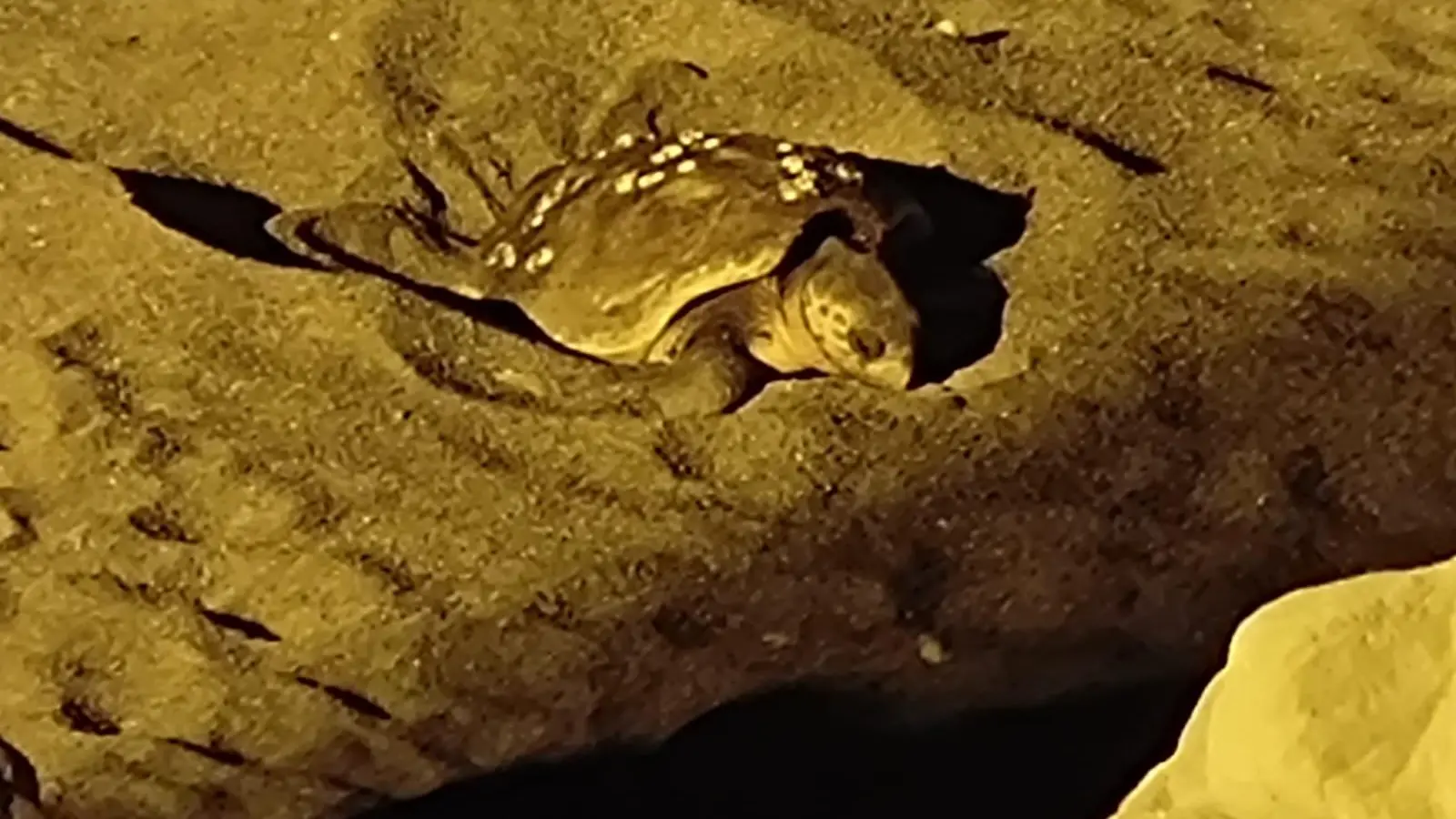 Stanotte, dopo le 3, una tartaruga ha deposto le uova sulla spiaggia di Bocale, esattamente di fronte al Lido Calypso Ye Ye. Ignara di essere osservata da alcuni ragazzi che si attardavano nel chiosco, si è fatta immortalare per tutto il tempo della deposizione.