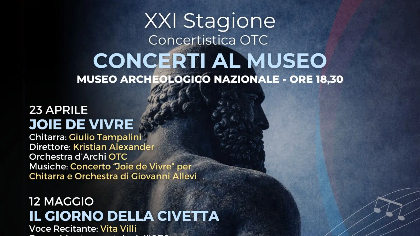Biglietti per i Concerti al Museo solo in prevendita presso La Bottega della Musica (12 euro intero, 10 ridotto).