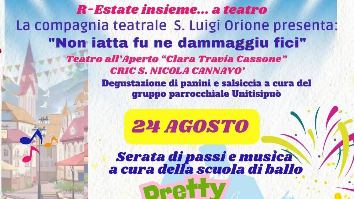 Si parte venerdì 23 agosto alle ore 19 con l’apertura degli stand artigianali a cura dell’APS Il Sentiero degli Artigiani della Terra di Calabria, guidata da Domenica Cuzzola. Alle 20 spazio alla degustazione di panini con salsiccia e patate a cura del gruppo parrocchiale Uniti si può. In serata, alle 21.30, la Compagnia San Luigi Orione porterà in scena la commedia brillante in dialetto calabrese “Non iatta fu e non dammaggiu fici”, scritta da Lucio Giordano con la regia di Pino Cambera.