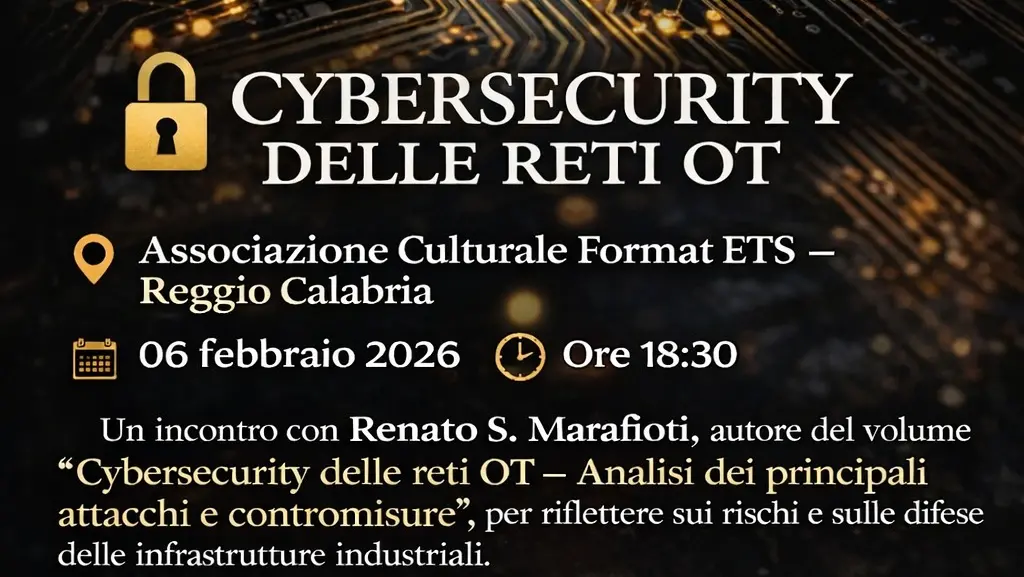L’appuntamento è per martedì 10 febbraio 2026, alle ore 18:30, presso la sede dell’associazione in Via Sbarre Centrali, 182 a Reggio Calabria. L’evento, che rientra ufficialmente nel calendario del Safer Internet Day 2026 — la giornata mondiale per la sicurezza in rete promossa dalla Commissione Europea e celebrata quest’anno il 10 febbraio saferinternet.org.uk — vedrà la presentazione del libro “Cybersecurity delle reti OT” da parte del suo autore, il dott. Renato Marafioti, docente, formatore in discipline informatiche e presidente di Format ETS.