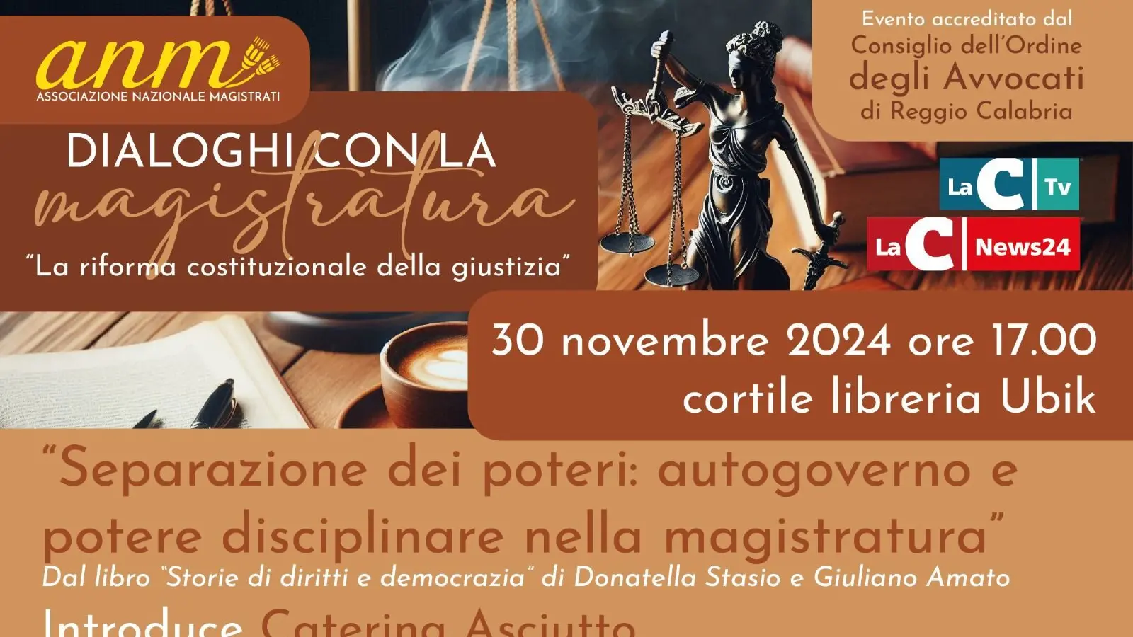 Separazione dei poteri: autogoverno e potere disciplinare nella magistratura. Sarà questo il tema del secondo dei tre incontri, previsti nell’ambito della rassegna “Dialoghi con la Magistratura” e organizzati dai magistrati dell’Anm Sezionale comprendente Reggio Calabria, Locri e Palmi, che si terrà Sabato 30 Novembre alle ore 17.00 presso il cortile adiacente alla libreria Ubik, sita in Corso Garibaldi.